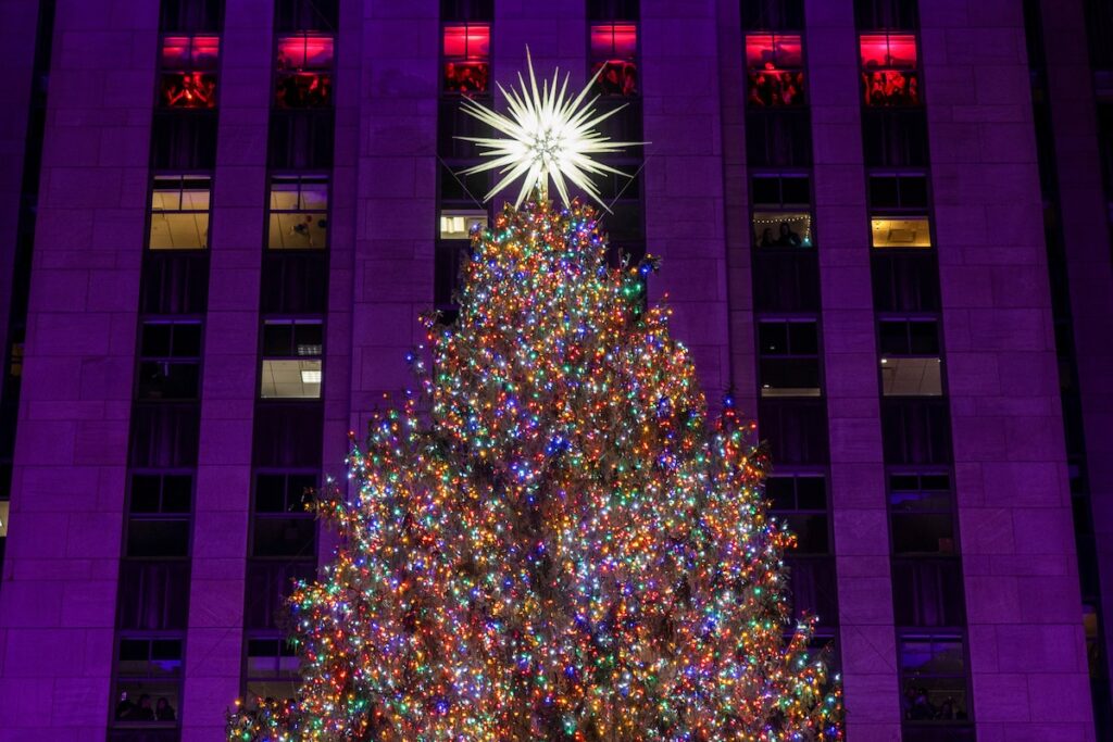 Cincuenta mil luces multicolores se iluminaron en el emblemático árbol de Navidad del Rockefeller Center el miércoles por la noche ante los vítores de la multitud reunida para presenciar la tradición anual de la ciudad de Nueva York.