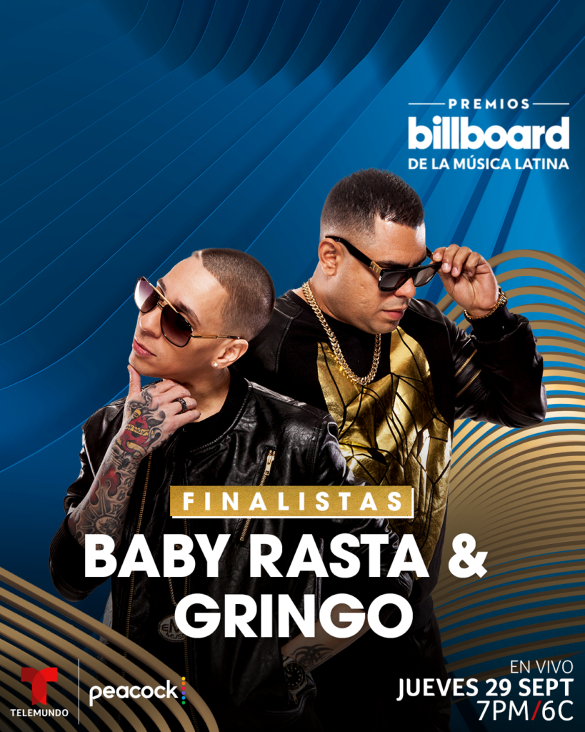 Miami, Fl –22 de agosto de 2022) – El duo legendario de la musica Hip-Hop y Reggaeton, Baby Rasta y Gringo recibieron la hoy la noticia de que son finalistas en los Premios Billboard De La Musica Latina. La categoria es Latin Rhythm del Año, Duo o Grupo, compitiendo con colegas como Zion & Lennox, Wisin & Yandel, Los Legendarios, y Piso 21.