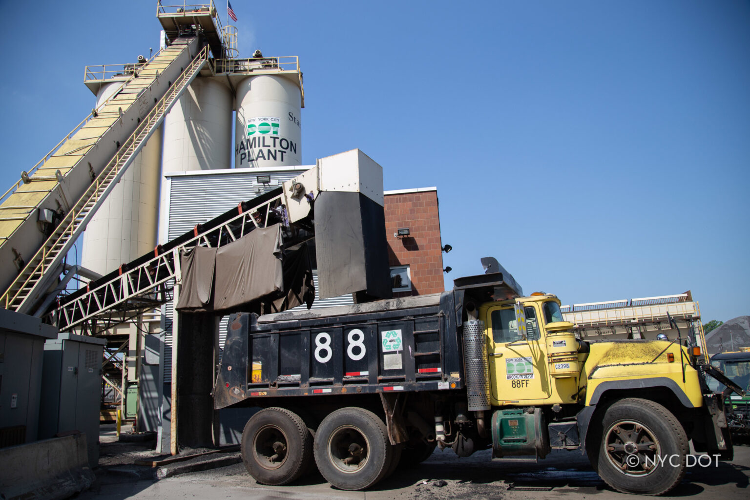 El NYC DOT supera ampliamente el promedio nacional del 20 por ciento de material de carretera reciclado utilizado en la producción de asfalto.