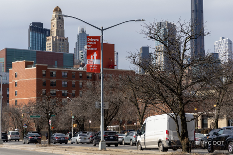 El NYC DOT utilizará 1.000 de sus postes de alumbrado público para colgar pancartas con mensajes de seguridad vial