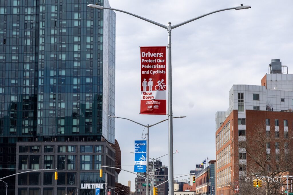 El NYC DOT utilizará 1.000 de sus postes de alumbrado público para colgar pancartas con mensajes de seguridad vial