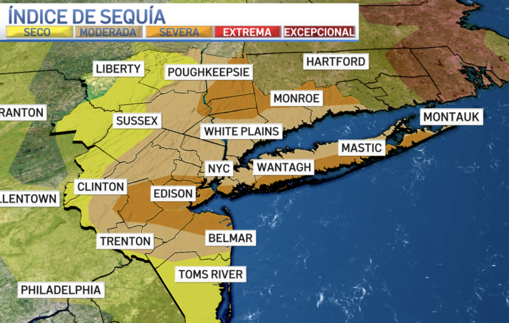 Nuestra meteoróloga de la Autoridad en el Tiempo, Andrea Romero, señaló que en estos momentos algunas de las zonas más impactadas por la falta de lluvia y con condiciones severas de sequía en nuestra área son porciones de la parte baja del Valle Hudson en los condados de Westchester, Putnam, Dutchess, Ulster, Orange y Rockland; además del sur de la Ciudad de Nueva York, como el condado de Staten Island, y la costa sur de Nassau y Suffolk. En Nueva Jersey, por su parte, las condiciones severas están en los condados de Somerset, Middlesex, Unión y Essex.