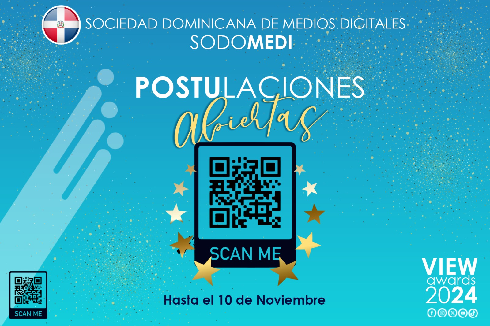 La entidad de la comunicación digital agregó que para optar por una de las codiciadas estatuillas de los Premios View Awards SODOMEDI (VAS), los interesados pueden postularse hasta el 10 de noviembre, desde cualquier parte del mundo en www.viewawards.do, eligiendo la categoría de su interés.
