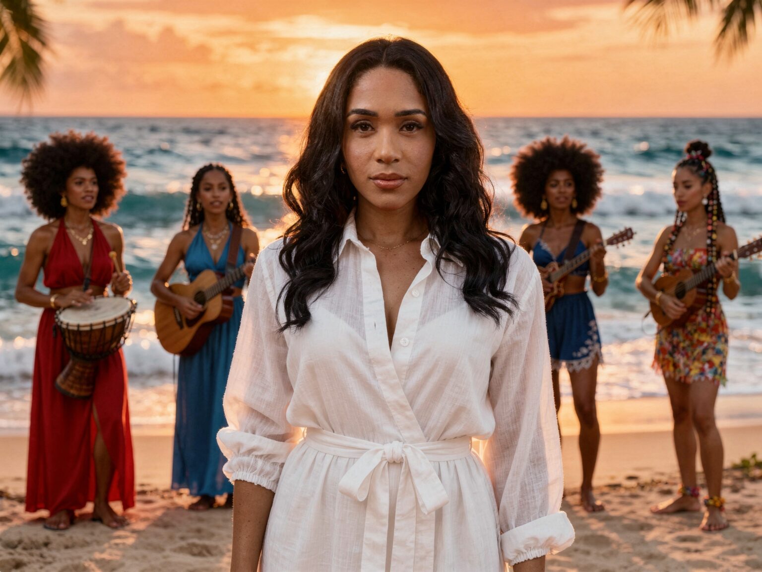 Simultáneamente, la artista se integra con el pueblo en su estado más genuino: desde las costas de aguas cristalinas hasta el verdor de las montañas. Su interpretación se convierte en un acto de servicio cultural que nace de la pasión por la tierra, destacando la autenticidad y el carisma del dominicano.