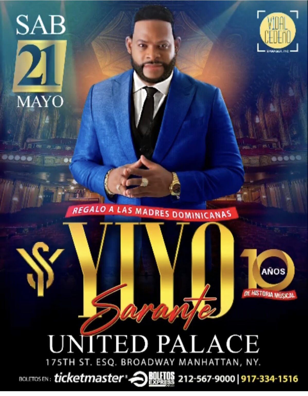El United Palace está preparando un certificado para entregárselo a Yiyo por el ‘sold out’ dos semanas antes de la celebración de los “10 años”, lo que es un récord para el salsero.